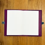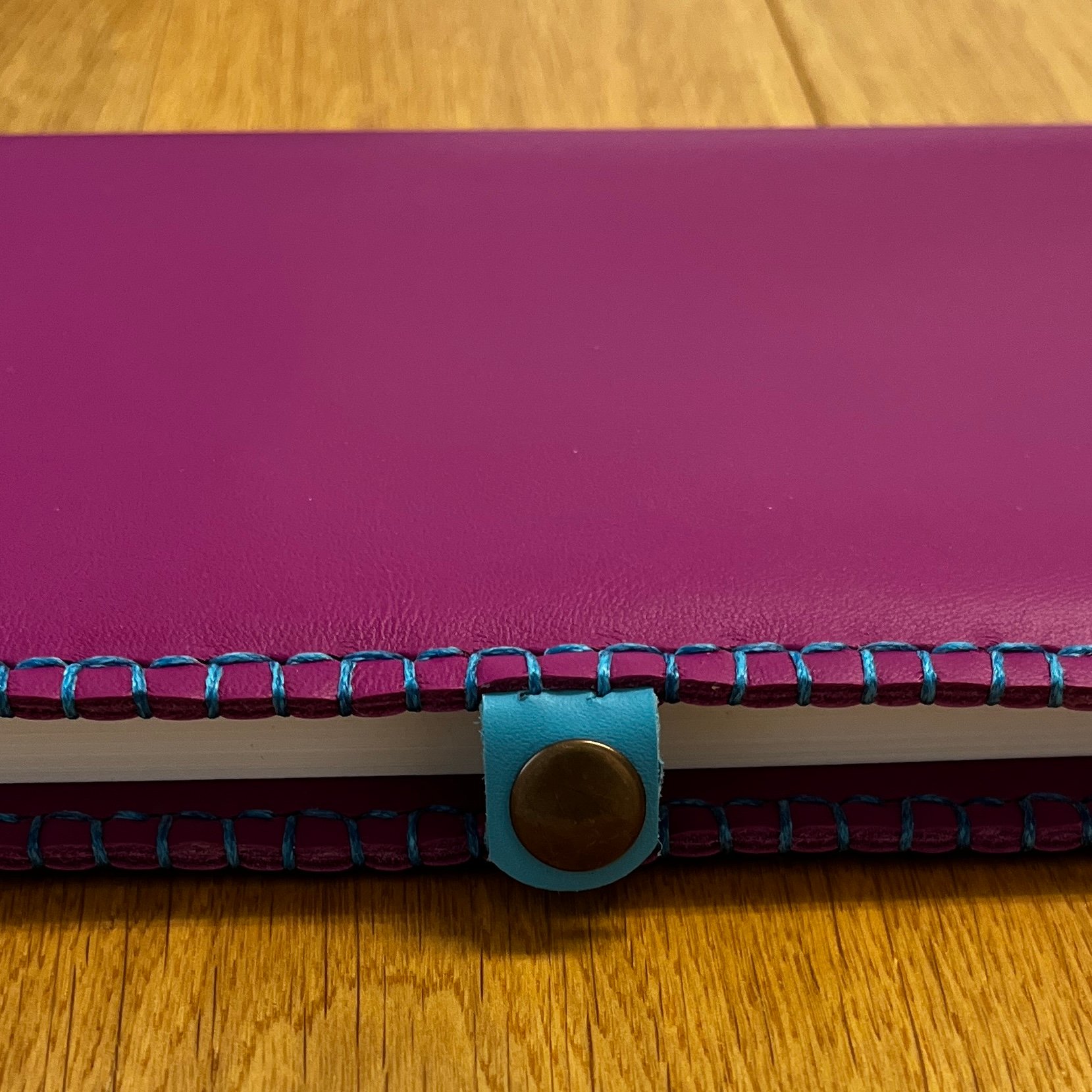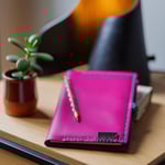 Preciosa funda de cuero rosa, totalmente cosida a mano. Tiene la medida exacta para albergar y proteger un cuaderno Yuzu de la prestigiosa marca británica de papelería artesanal Pith (cuaderno de 156 páginas y 130 gr de gramaje incluido en el precio).